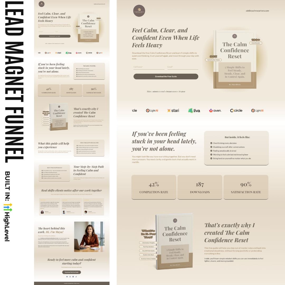 I create a simple funnel that guides leads from interest to decision naturally. Every page, message, and step is designed to remove friction, so your leads feel understood and ready to say yes.